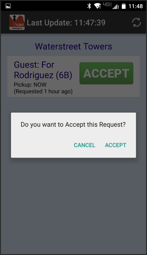You can also receive and accept requests through our free Valet App. Search for "BuildingLink Valet App" in the Google Play Store or Apple Store and select Install.