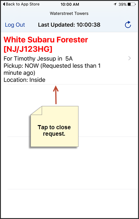 If you have an iPhone, simply tap on new requests (displayed in green) to accept them, and tap on completed requests (displayed in red) to close them. If you have an Android, select Accept to accept new requests and Close to close out completed requests.
