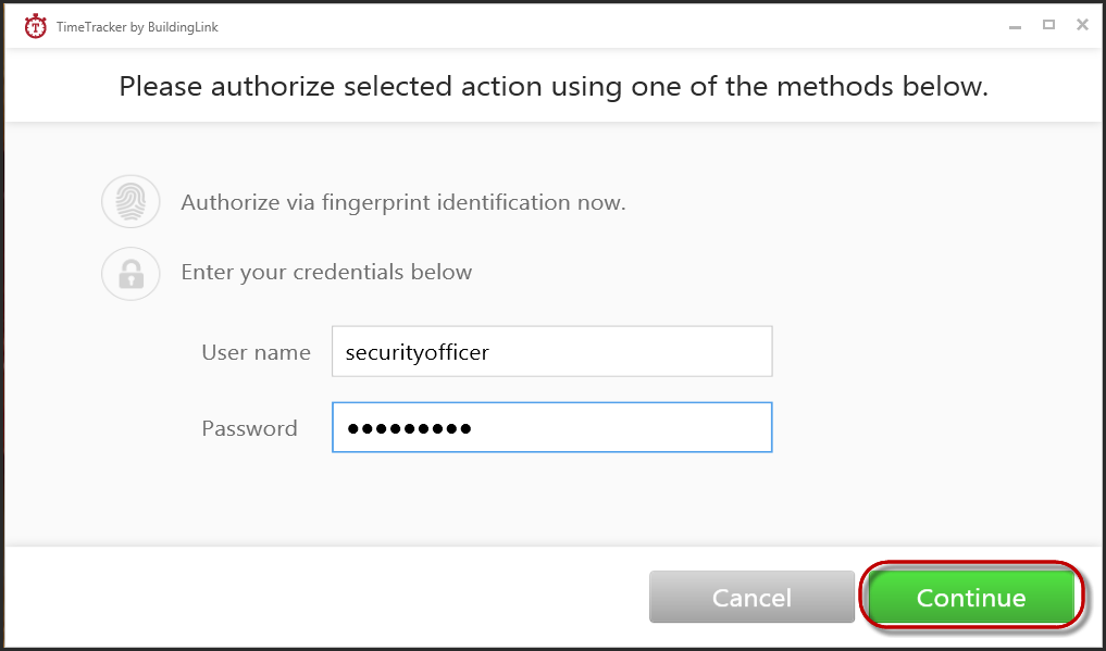 Breaks: When configuring the TimeTracker Console, Security Officer Level Users may decide to track breaks. In order to sign out for a break, make sure you have already clocked In for the day. With the TimeTracker Console on the screen, place your registered finger on the fingerprint reader. The console’s screen will change to a grid of various time length choices. Click on the appropriate time length for the break. On this screen, you may also type in any notes that relate to the break. A small pop-up will let you know that you are now on break and will disappear after a few seconds.