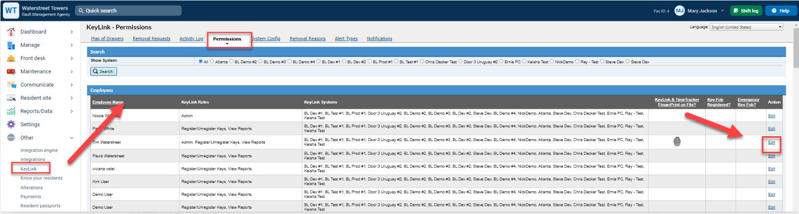 Open BuildingLink and click on the Other tab, then click on Permissions at the top of the page. Click Edit next to the name of the person to whom you'd like to register the fob. Keep in mind, even though you're registering the fob to a specific person, anyone can use the fob in an emergency. Next, select "Yes" to make the fob an emergency fob. Click Update.