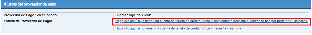 Por favor, tome nota de que BuildingLink no puede ayudarlo con la configuración y resolución de problemas en Stripe. Para consultas relacionadas con Stripe, comuníquese con el equipo de soporte de Stripe o consulte su página de preguntas frecuentes para obtener ayuda.