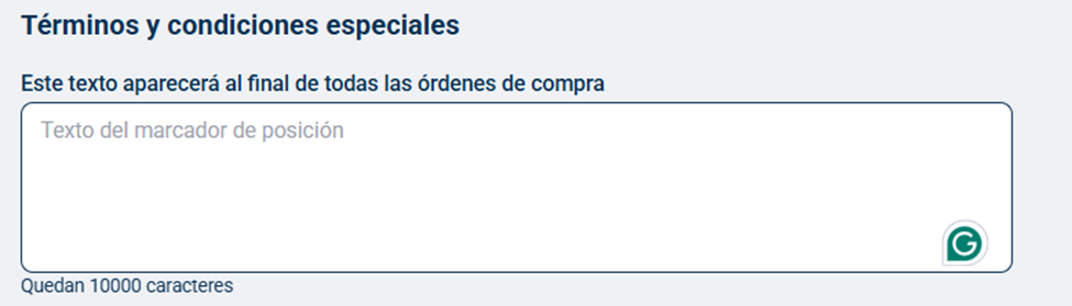 Puede añadir texto adicional en la parte inferior de las órdenes de compra.