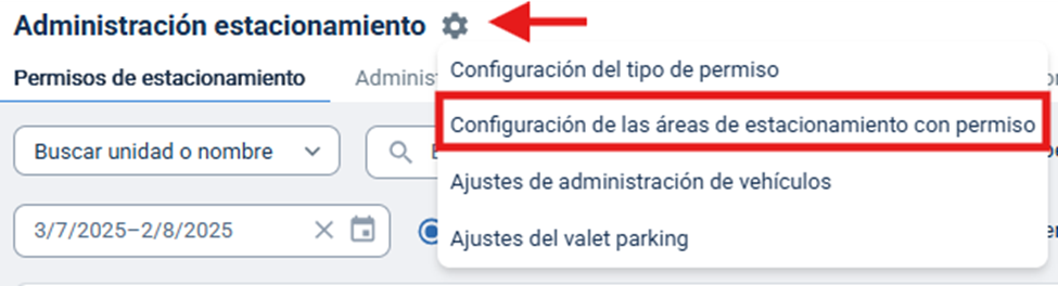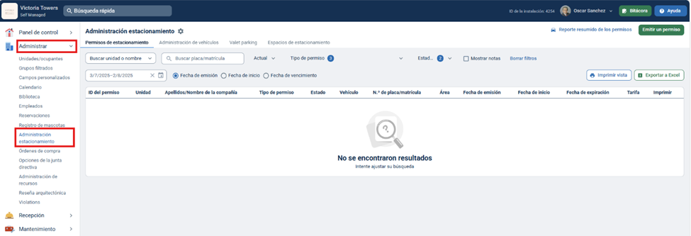 Nota: Si no ve las opciones de Administración de estacionamiento o Permisos de estacionamiento y desea utilizarlas, comuníquese con espanol@buildinglink.com para recibir asistencia.