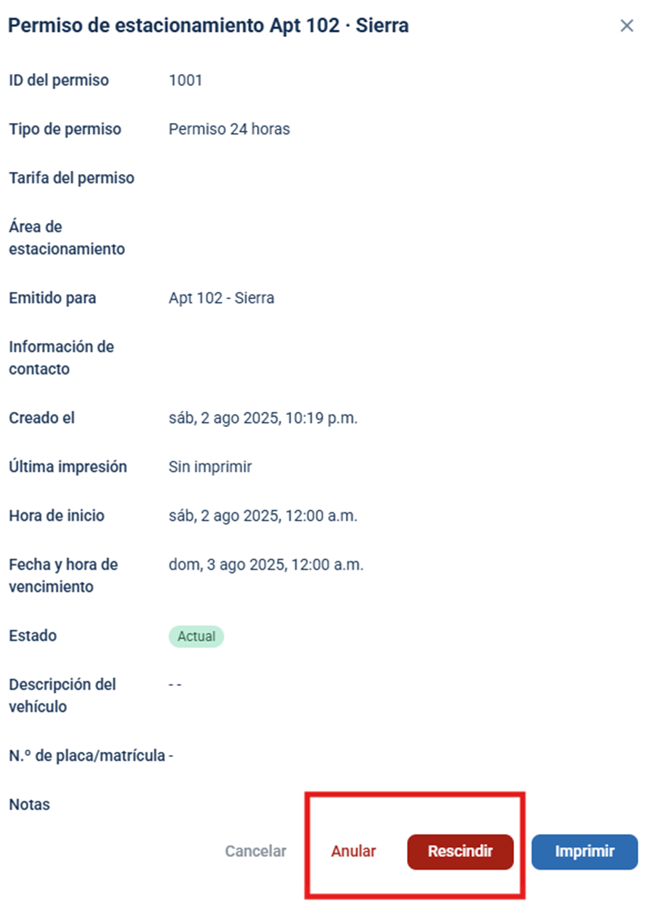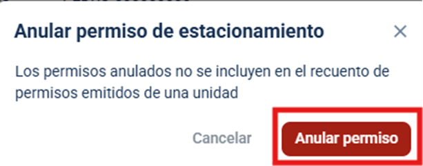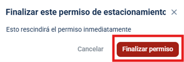 En ambos casos, se abrirá una ventana secundaria para terminar de anular o rescindir el permiso. Haga clic en Anular permiso o Finalizar permiso para completar la acción.
