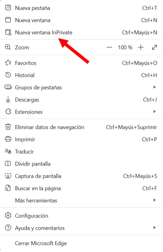 Microsoft Edge también le permite abrir un navegador adicional en modo privado, lo cual posibilita tener abiertas varias ventanas de BuildingLink en su equipo. Para abrir un navegador en Modo Privado en Microsoft Edge, vaya a la esquina superior derecha de la ventana de su navegador y seleccione el botón de Ajustes (tres puntos).