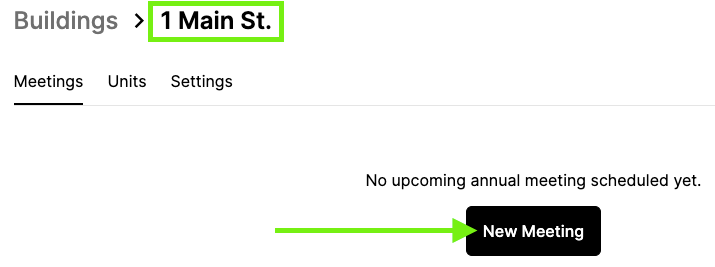 1. Sous le bon immeuble, cliquez sur « Nouvelle réunion ».