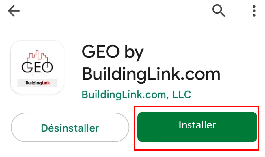 Plusieurs applications BuildingLink peuvent être téléchargées. Assurez-vous de télécharger « GEO by BuildingLink », ce qui est facilement confondu avec les applications BuildingLink Valet et BuildingLink.
