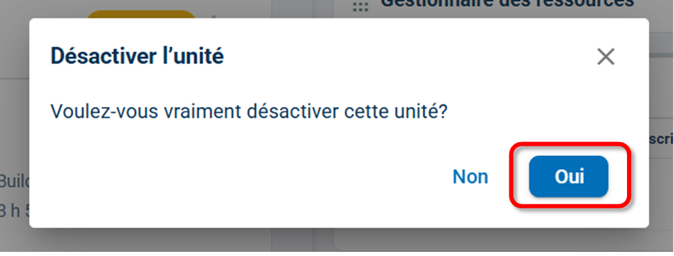 Utilisez la Recherche rapide pour saisir le prénom et le nom du résident ou le numéro de l’unité, puis sélectionnez l’unité afin d’ouvrir la page Aperçu de l’unité. Ensuite, cliquez sur le bouton rouge Désactiver, situé dans le coin supérieur droit. Lorsque le message de confirmation s’affiche, cliquez sur Oui. Enfin, vous recevrez une notification indiquant que le profil de l’unité a été désactivé. Si nécessaire, vous aurez toujours la possibilité de réactiver l’ancien profil.