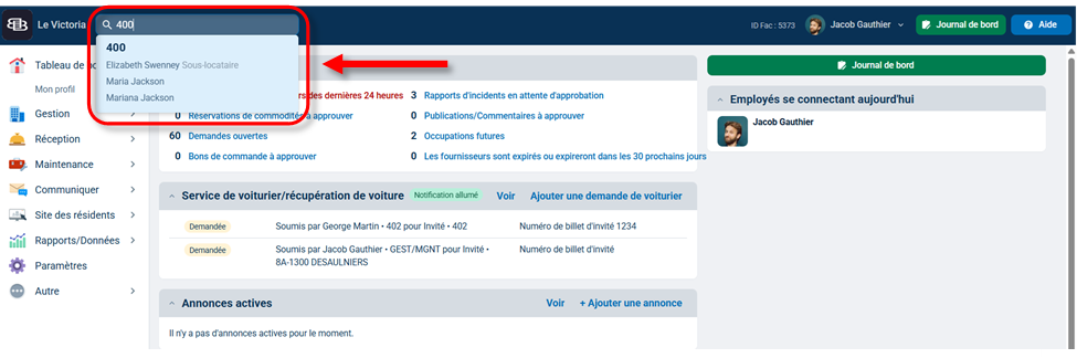 Suivez les étapes ci-dessous pour modifier toute information associée à un occupant précis (nom, coordonnées, etc.).