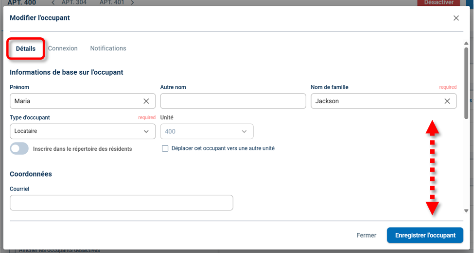 Une fois les modifications terminées, cliquez sur Enregistrer l’occupant.